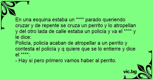 En una esquina estaba un **** parado queriendo cruzar y de repente se cruza un perrito y lo atropellan y del otro lada de calle estaba un policía y va el **** y le dice: