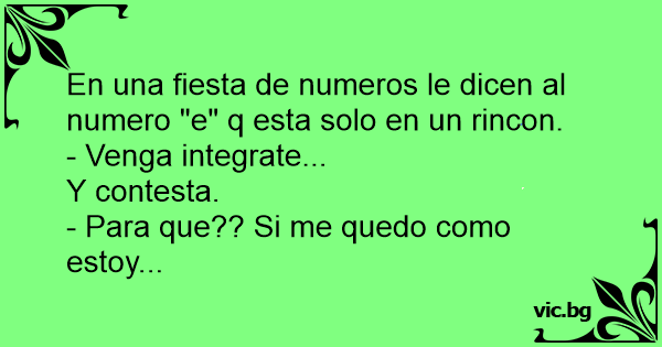En una fiesta de numeros le dicen al numero "e" q esta solo en un rincon.