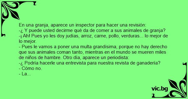 - Pues no sé cómo no le da vergüenza. No hay derecho que alimente tan mal a sus animales... Ya verá lo que vamos a decir de usted... Al día siguiente aparee otro periodista: