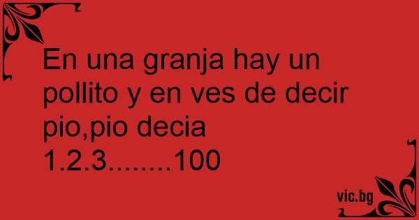 En una granja hay un pollito y en ves de decir pio,pio decia 1.2.3........100