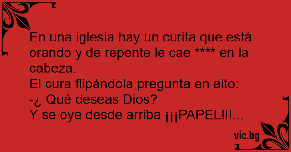 En una iglesia hay un curita que está orando y de repente le cae **** en la cabeza.