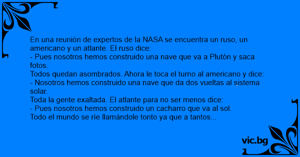 En una reunión de expertos de la NASA se encuentra un ruso, un americano y un atlante. El ruso dice:
