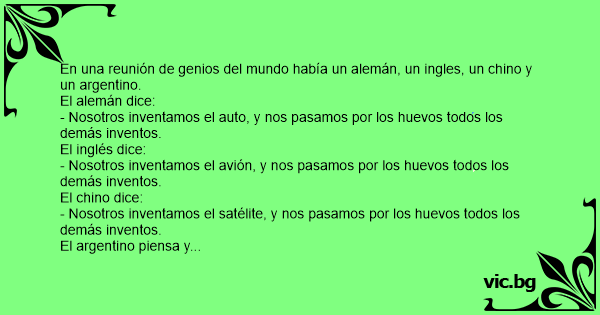 En una reunión de genios del mundo había un alemán, un ingles, un chino y un argentino.