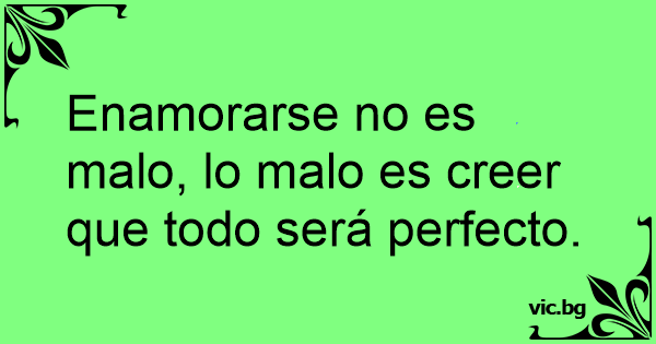 Enamorarse no es malo, lo malo es creer que todo será perfecto.