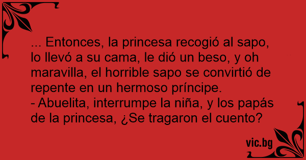 - Abuelita, interrumpe la niña, y los papás de la princesa, ¿Se tragaron el cuento?