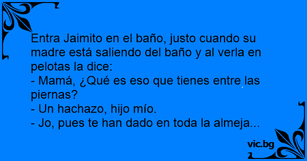 Entra Jaimito en el baño, justo cuando su madre está saliendo del baño y al verla en реlотаs la dice: