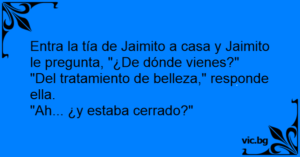 Entra la tía de Jaimito a casa y Jaimito le pregunta, "¿De dónde vienes?"