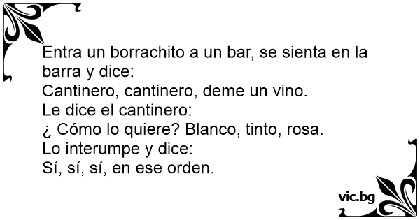 Entra un borrachito a un bar, se sienta en la barra y dice: