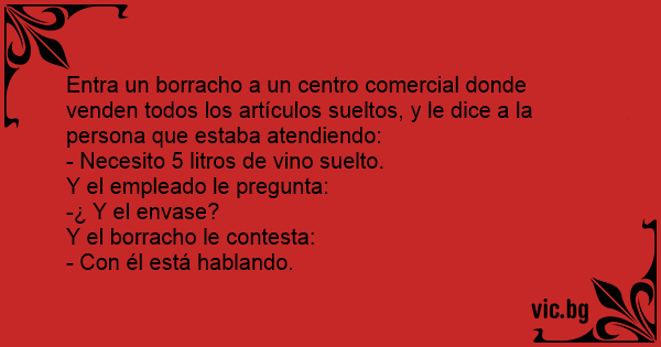 Entra un borracho a un centro comercial donde venden todos los artículos sueltos, y le dice a la persona que estaba atendiendo: