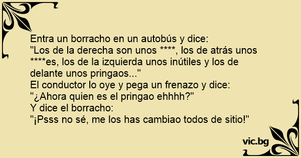 "Los de la derecha son unos ****, los de atrás unos ****es, los de la izquierda unos inútiles y los de delante unos pringaos..."