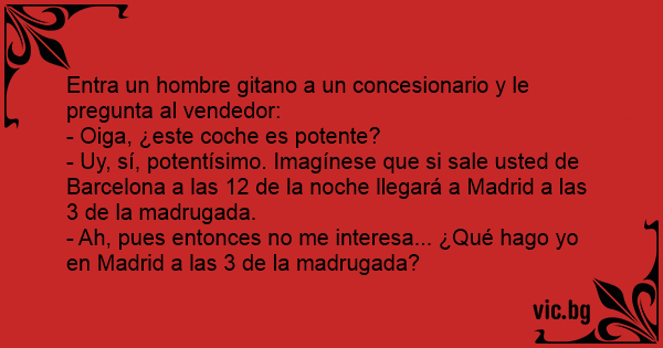 Entra un hombre gitano a un concesionario y le pregunta al vendedor: