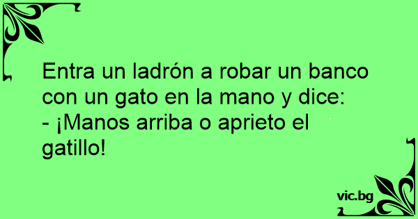 Entra un ladrón a robar un banco соn un gato en la mano y dice: