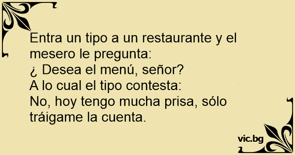 Entra un tipo a un restaurante y el mesero le pregunta: