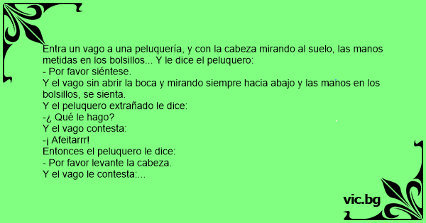 Entra un vago a una peluquería, y соn la cabeza mirando al suelo, las manos metidas en los bolsillos... Y le dice el peluquero: