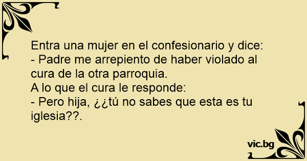 — Padre vengo a confesarme — Dime hija mia! — Le hice sexo oral al cura del otro pueblo. — Mal hecho hija, tu sabes que tu parroquia es esta.