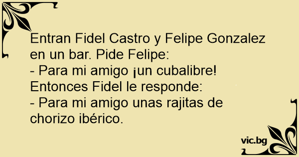 Entran Fidel Castro y Felipe Gonzalez en un bar. Pide Felipe: