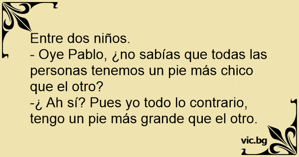 -¿ Ah sí? Pues yo todo lo contrario, tengo un pie más grande que el otro.