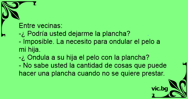 - No sabe usted la cantidad de cosas que puede hacer una plancha cuando no se quiere prestar.
