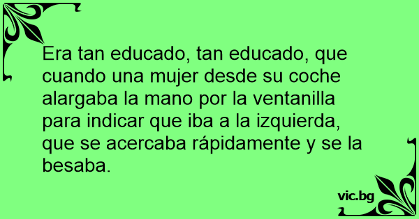 Era tan educado, tan educado, que cuando una mujer desde su coche alargaba la mano por la ventanilla para indicar que iba a la izquierda, que se acercaba rápidamente y se la besaba.
