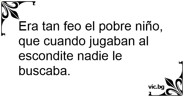 Era tan feo el pobre niño, que cuando jugaban al escondite nadie le buscaba.