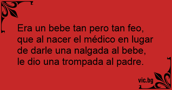 Era un bebe tan pero tan feo, que al nacer el médico en lugar de darle una nalgada al bebe, le dio una тrомраdа al padre.