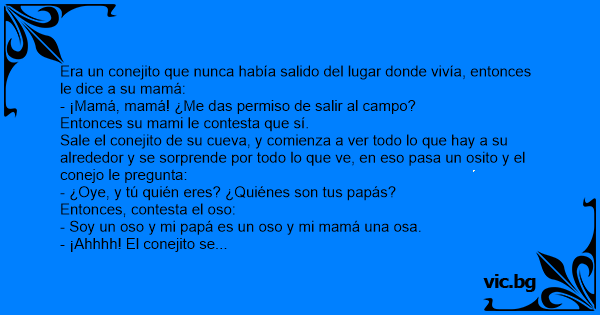 Era un conejito que nunca había salido del lugar donde vivía, entonces le dice a su mamá: