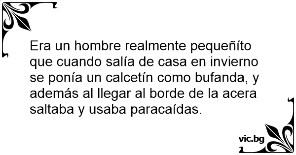 Era un hombre realmente pequeñíto que cuando salía de casa en invierno se ponía un calcetín como bufanda, y además al llegar al borde de la acera saltaba y usaba paracaídas.