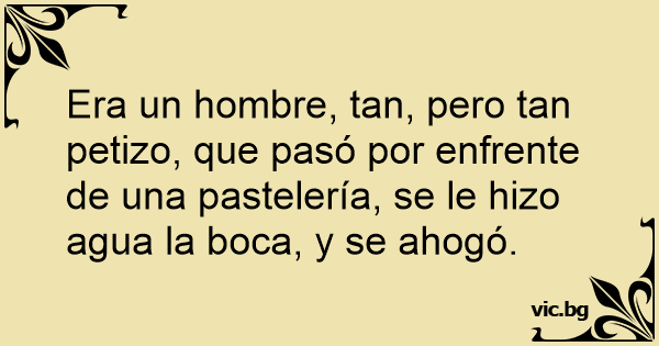 Era un hombre, tan, pero tan petizo, que pasó por enfrente de una pastelería, se le hizo agua la boca, y se ahogó.