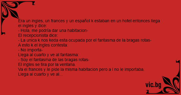 Era un ingles, un frances y un español k estaban en un hotel entonces llega el ingles y dice: