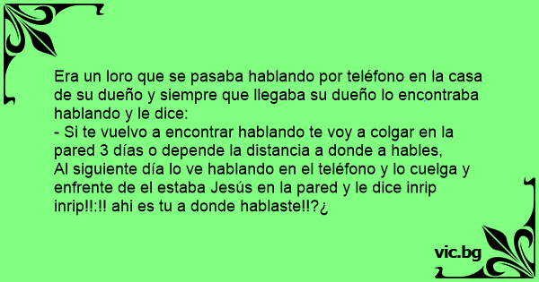Al siguiente día lo ve hablando en el teléfono y lo cuelga y enfrente de el estaba Jesús en la pared y le dice inrip inrip!!:!! ahi es tu a donde hablaste!!?¿