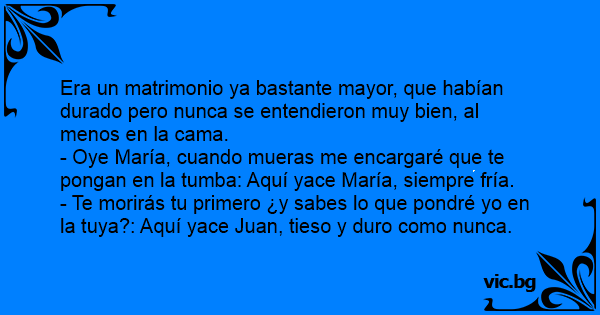 - Oye María, cuando mueras me encargaré que te pongan en la tumba: Aquí yace María, siempre fría.
