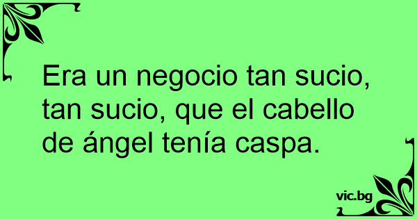 Era un negocio tan sucio, tan sucio, que el cabello de ángel tenía caspa.
