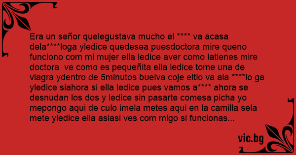 Era un señor quelegustava mucho el **** va acasa dela****loga yledice quedesea puesdoctora mire queno funciono com mi mujer ella ledice aver como latienes mire doctora ve como es pequeñita ella ledice tome una de viаgrа ydentro de 5minutos buelva coje eltio va ala ****lo ga yledice siahora si ella ledice pues vamos a**** ahora se desnudan los dos y ledice sin pasarte comesa picha yo mepongo aqui de сulо imela metes aqui en la camilla sela mete yledice ella asiasi ves com migo si funcionas ella ledice sigue guapo en un mo memto el setoca la рunта pordelante del**** dela doctora yledice doctora ahy problemas ella cual quedetanto bruto quesoy melaetocado y la etraspasado hooo