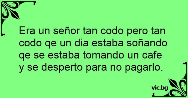 Era un señor tan codo pero tan codo qe un dia estaba soñando qe se estaba tomando un cafe y se desperto para no pagarlo.