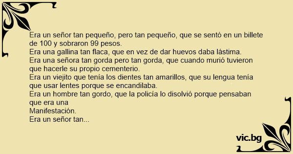 Era un señor tan pequeño, pero tan pequeño, que se sentó en un billete de 100 y sobraron 99 pesos.