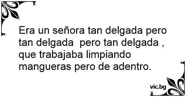 Era un señora tan delgada pero tan delgada pero tan delgada , que trabajaba limpiando mangueras pero de adentro.