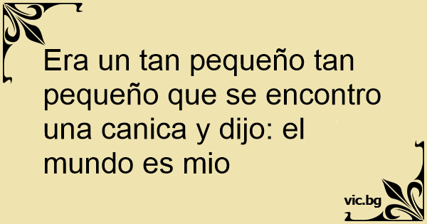 Era un tan pequeño tan pequeño que se encontro una canica y dijo: el mundo es mio