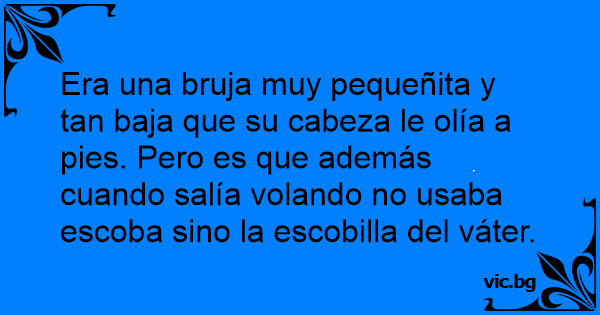 Era una bruja muy pequeñita y tan baja que su cabeza le olía a pies. Pero es que además cuando salía volando no usaba escoba sino la escobilla del váter.