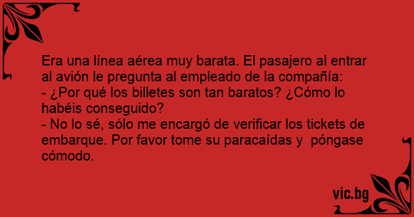 Era una línea aérea muy barata. El pasajero al entrar al avión le pregunta al empleado de la compañía: