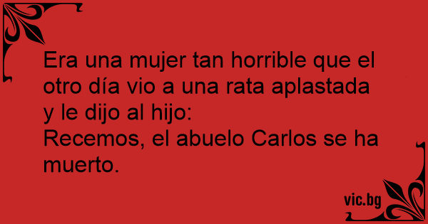 Era una mujer tan horrible que el otro día vio a una rata aplastada y le dijo al hijo: