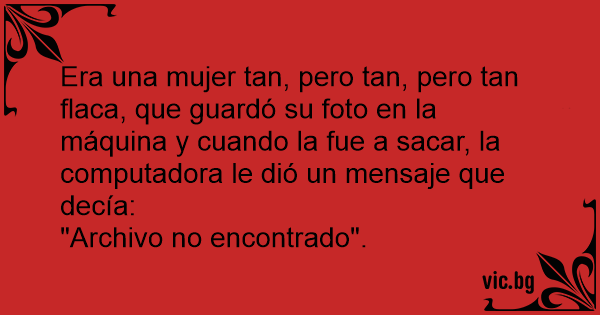 Era una mujer tan, pero tan, pero tan flaca, que guardó su foto en la máquina y cuando la fue a sacar, la computadora le dió un mensaje que decía: