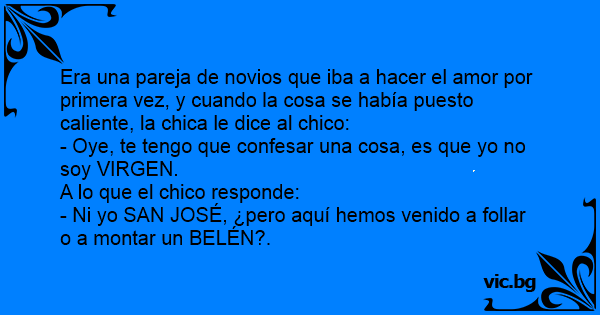 Era una pareja de novios que iba a hacer el amor por primera vez, y cuando la cosa se había puesto caliente, la chica le dice al chico: