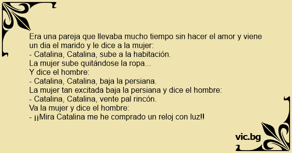 Era una pareja que llevaba mucho tiempo sin hacer el amor y viene un dia el marido y le dice a la mujer:
