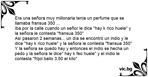 Iba por la calle cuando un señor le dice "hay k rico huele" y la señora le contesta "fransua 350"