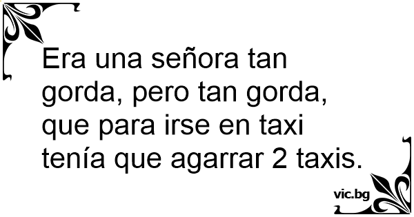 Era una señora tan gorda, pero tan gorda, que para irse en taxi tenía que agarrar 2 taxis.