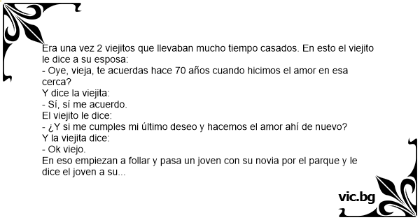 - Oye, vieja, te acuerdas hace 70 años cuando hicimos el amor en esa cerca?