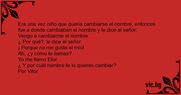 Era una vez niño que quería cambiarse el nombre, entonces fue a donde cambiaban el nombre y le dice al señor:
