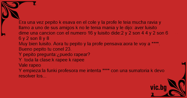 Muy bien luisito. Aora tu pepito y la profe pensava:aora te voy a ****.