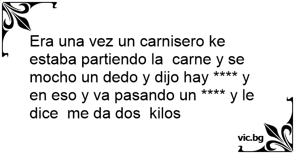 Era una vez un carnisero ke estaba partiendo la carne y se mocho un dedo y dijo hay **** y en eso y va pasando un **** y le dice me da dos kilos