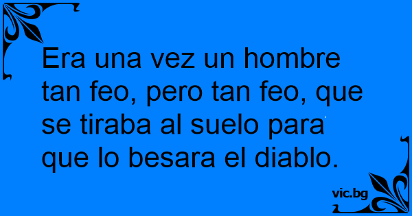 Era una vez un hombre tan feo, pero tan feo, que se tiraba al suelo para que lo besara el diablo.